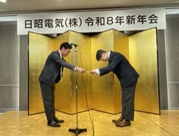 明治神宮での祈願後は明治記念館へ移動し、2026年4月入社の内定者を含めた日昭電気社員およびグループ会社・日友会・協力会社の方々も合わせて新年会のパーティーを実施いたしました。