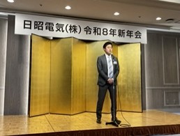 明治神宮での祈願後は明治記念館へ移動し、2026年4月入社の内定者を含めた日昭電気社員およびグループ会社・日友会・協力会社の方々も合わせて新年会のパーティーを実施いたしました。
